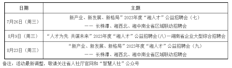歡迎廣大求職者攜帶簡(jiǎn)歷前來求職,更多活動(dòng)資訊請(qǐng)關(guān)注省人社廳官網(wǎng)及“智慧人社”微信公眾號(hào),或撥打省人力資源服務(wù)中心咨詢電話:0731-85063055。