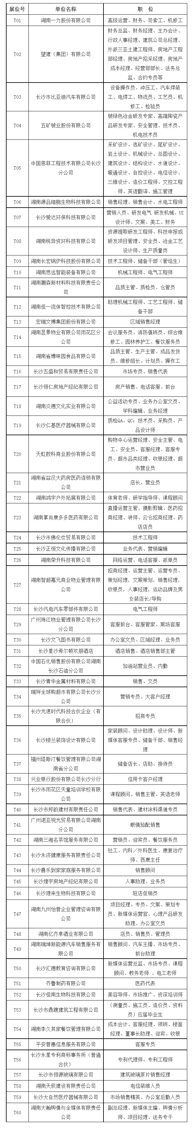 每場(chǎng)次活動(dòng)根據(jù)活動(dòng)主題和企業(yè)需求情況,收集相關(guān)企業(yè)人才需求,每場(chǎng)篩選60家有招聘需求的企業(yè)參會(huì),企業(yè)可通過撥打聯(lián)系電話(0731-85063729)或登錄線上招聘會(huì)專區(qū)預(yù)報(bào)名,報(bào)名成功將有專人對(duì)接;求職者如遇相關(guān)問題,可通過撥打聯(lián)系電話(0731-85063906)進(jìn)行咨詢。