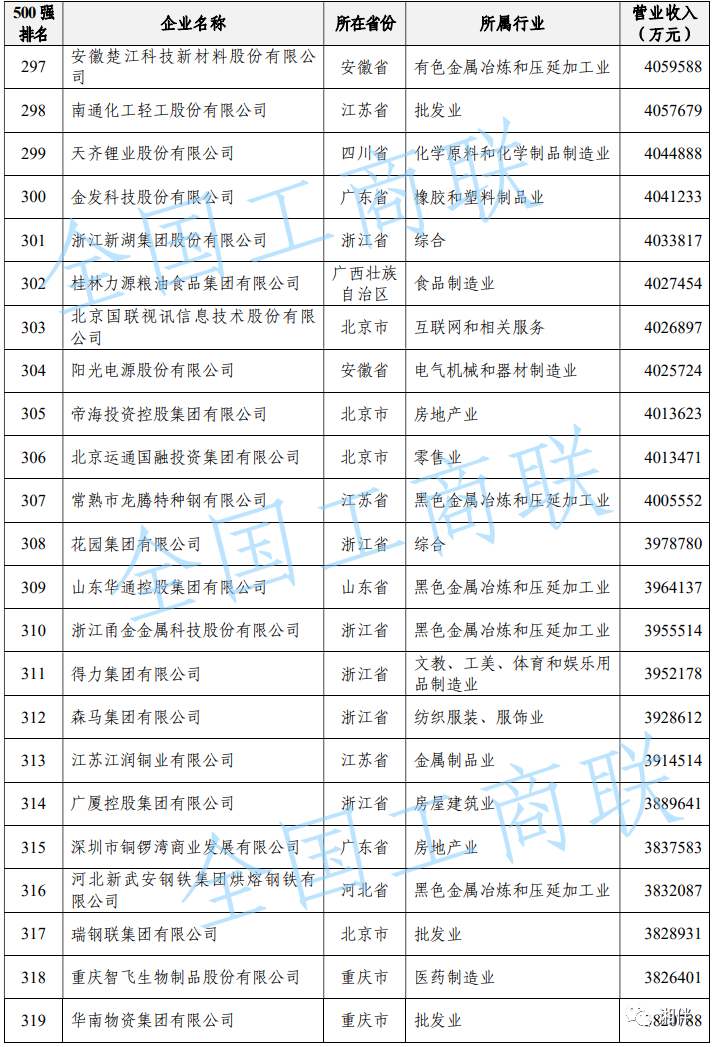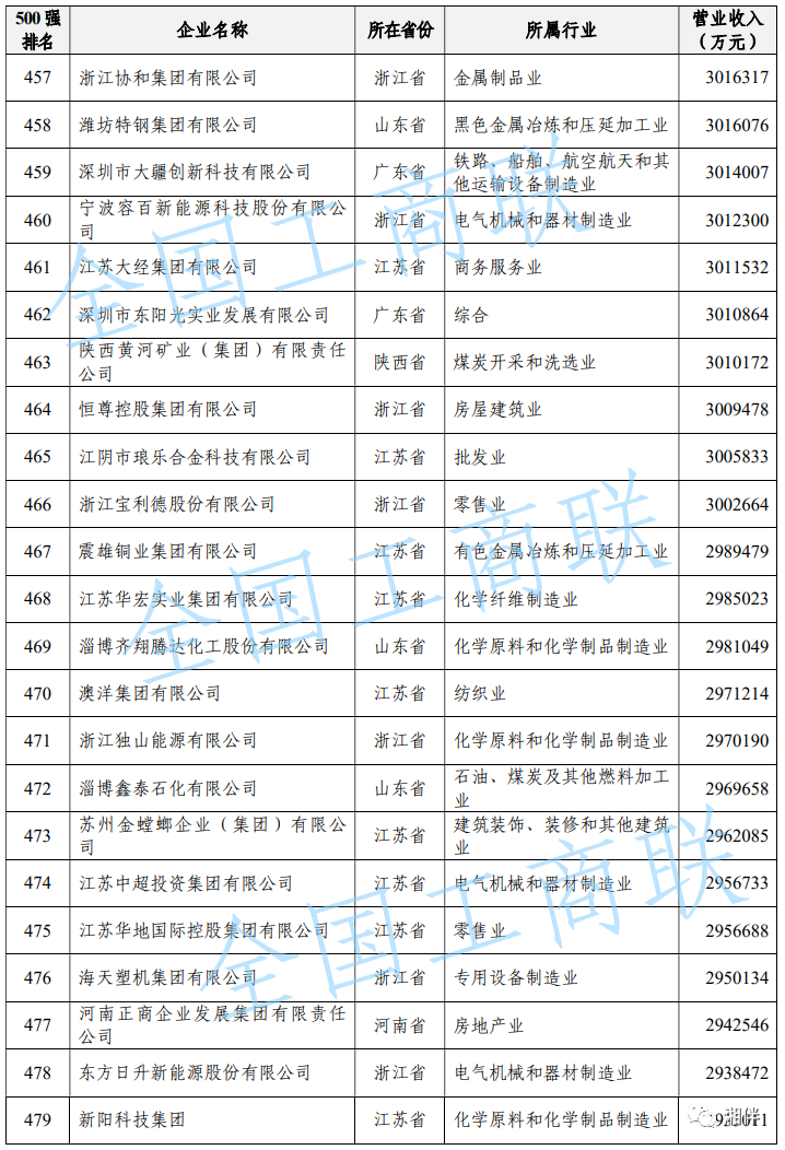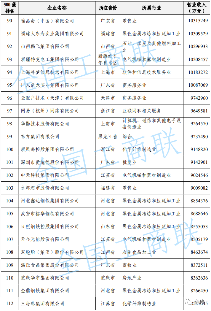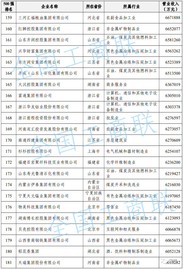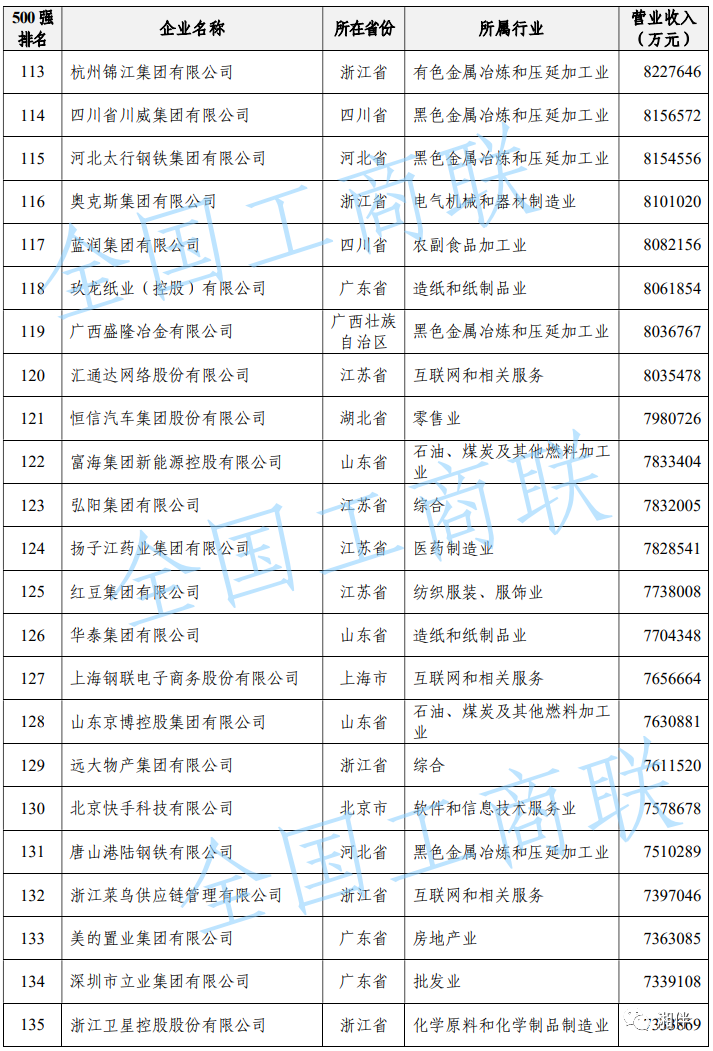 2023中國民營企業(yè)500強(qiáng)榜單