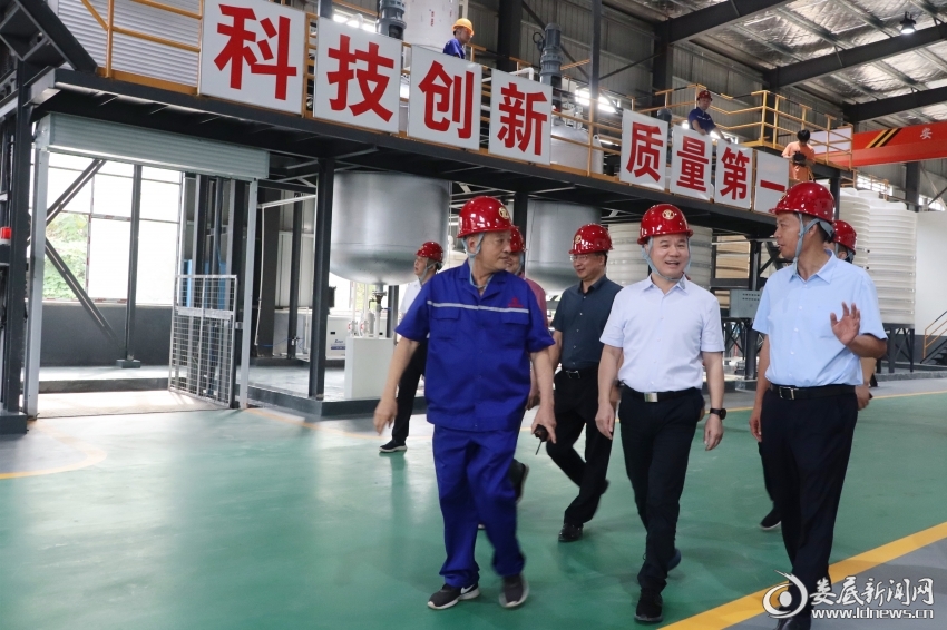 (湖南永澤冶金爐料有限公司、湖南永晟福新材料科技有限公司硅鋼表面涂層液項(xiàng)目竣工投產(chǎn)儀式后,李彥文一行參觀項(xiàng)目生產(chǎn)車間)