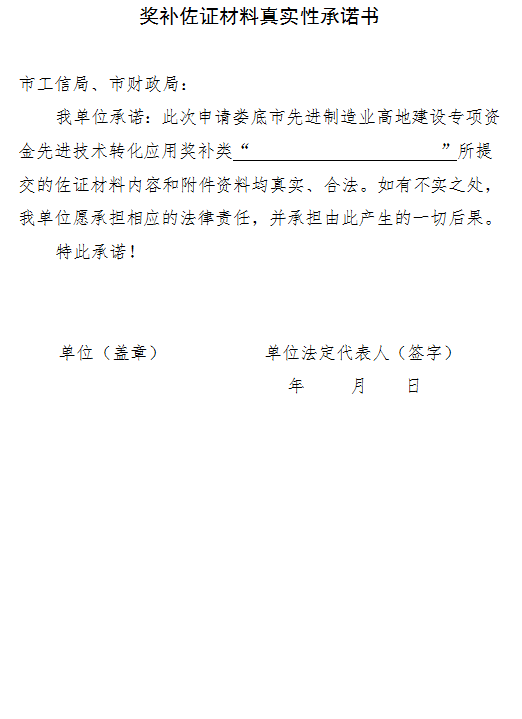 (三)其他要求。各縣市區(qū)須嚴(yán)格按照《婁底市先進(jìn)制造業(yè)高地建設(shè)專項(xiàng)資金管理辦法》(婁財(cái)企〔2023〕147號(hào))文件要求認(rèn)真組織項(xiàng)目申報(bào)工作,項(xiàng)目申報(bào)材料必須真實(shí)齊全。嚴(yán)禁違規(guī)推薦,弄虛作假,一旦查實(shí)有資料作假行為,不予受理其上報(bào)文件,并將影響到對(duì)轄區(qū)項(xiàng)目的支持,同時(shí)追究申報(bào)企業(yè)、審批人員的責(zé)任。