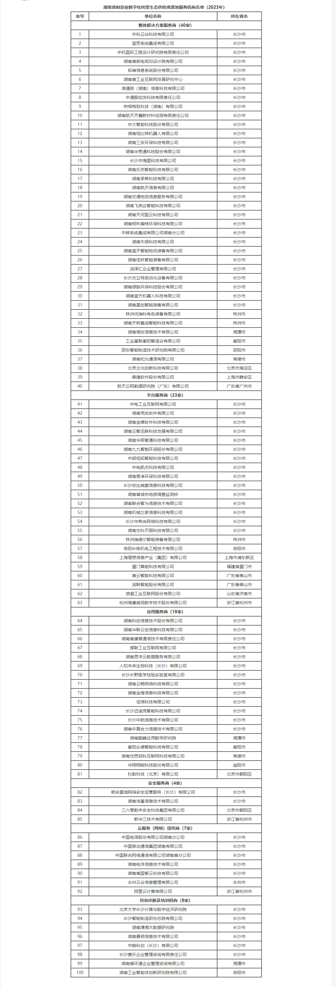附件:湖南省制造業(yè)數(shù)字化轉型生態(tài)供給資源池服務機構名單(2023年)