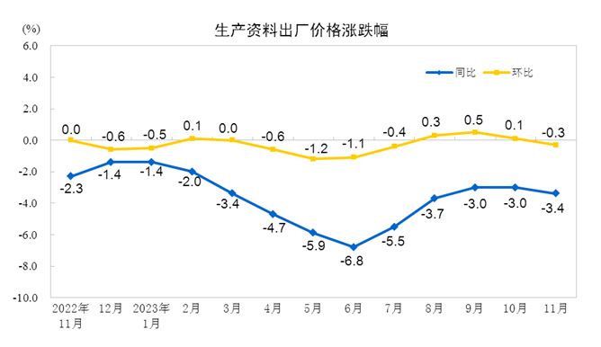 2023年11月份工業(yè)生產(chǎn)者出廠價(jià)格同比下降3.0% 環(huán)比下降0.3%